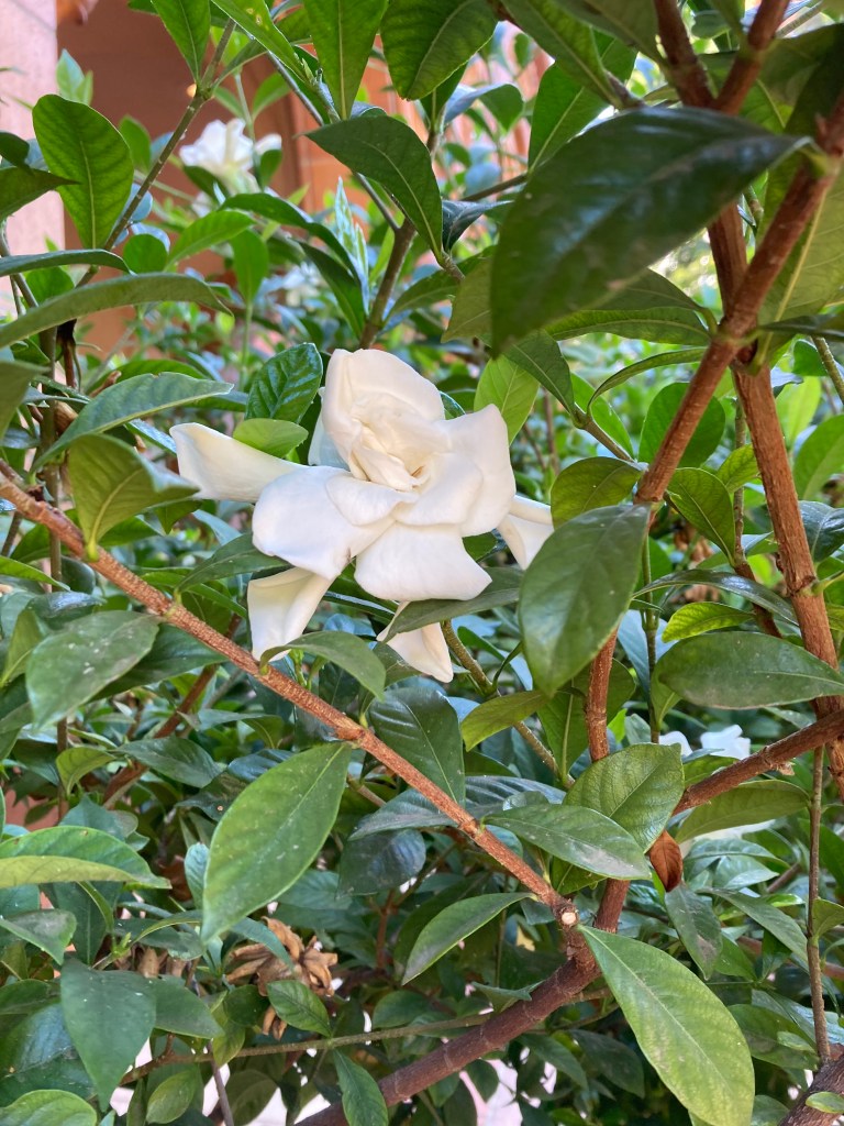The power was out for six hours on Monday night. 6-11pm, the hours I get to spend at home. It was 98 degrees outside, it must have been in the high 80’s inside. The lingering daily heat cooks the plants and trees and warms the gardenias up so much that their smell becomes an invisible cloud to walk through, like the feeling of a wave of warm water in a cold pool. I walk past the gardenias at work on my way to the parking ramp, since I’ve been driving to work instead of riding my bike. Two good reasons for it: first, to have more time at home with Sean and Jolie in the morning and afternoons. Second, because I don’t recover from the hot ride when it’s still almost 100 each day. Although I prefer to ride my bike to work, on principle, I have been completely delighted that my commute takes me six minutes and that I’m arriving home just as fast.